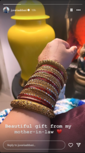 Javeria captioned the photo as ‘A beautiful gift from my mother-in-law’.