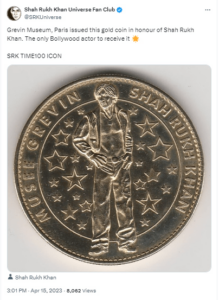 According to an Indian media report, the famous Grevin Museum of Paris has released a coin in the name of Shahrukh Khan, on which the actor’s picture is also written along with his name.