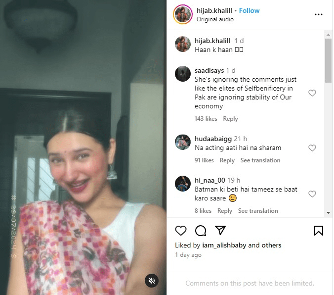 However, she has limited the comment section on her posts and is currently ignoring these negative comments.