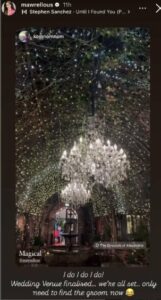 The actress shared a picture of a wedding venue on her Insta story and lights can be seen twinkling in it.