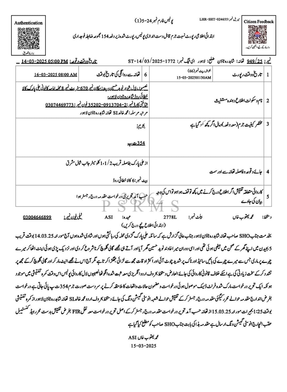 Senior police officials confirmed that a case has been filed under relevant provisions of the Pakistan Penal Code pertaining to physical assault and harassment. “Investigation is underway, and the accused will be arrested shortly,” a Shahdara Town Police spokesperson stated.
