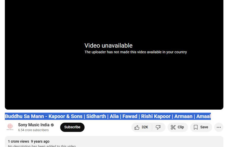Fawad Khan is facing a similar situation. The song Buddhu Sa Mann from Kapoor & Sons, in which he appeared alongside Sidharth Malhotra and Alia Bhatt, is no longer accessible on YouTube in India. Viewers now see a message saying the video isn’t available in their region. This track was uploaded by Sony Music India. Additionally, Fawad’s image has been scrubbed from song posters across several music apps.