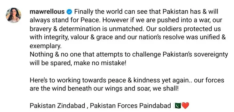 Mawra Hocane, despite once working in Bollywood, didn’t hold back. Even when her co-star Harshvardhan Rane criticized her, she responded strongly, saying, “her country and peace take precedence over any public relations or film promotion.”