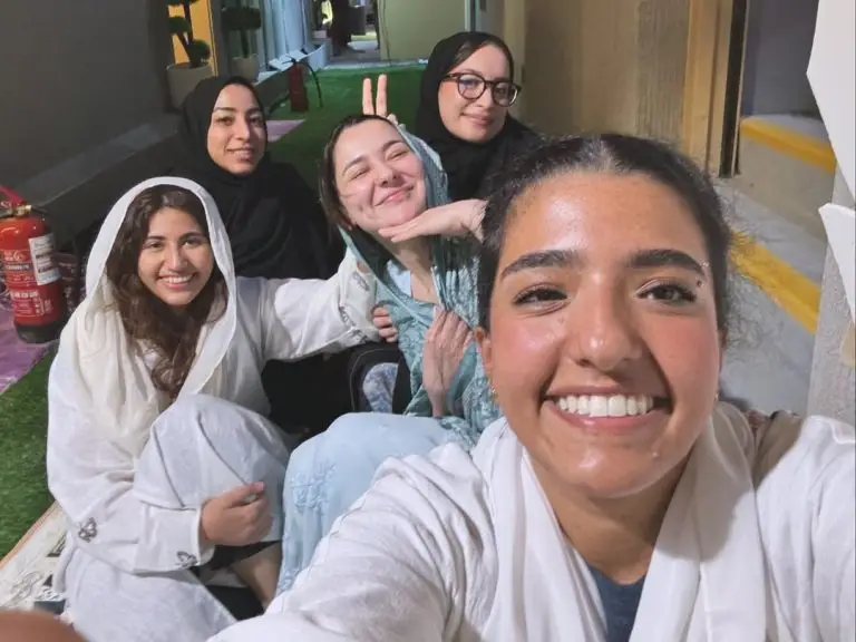 The actress was seen at the Mina camp, where she posed with her friends, dressed in a simple white Ihram abaya. Her companions shared photos as they greeted fans with a heartfelt “Chand Mubarak.” The images quickly spread across social media, attracting attention and sparking a range of responses.