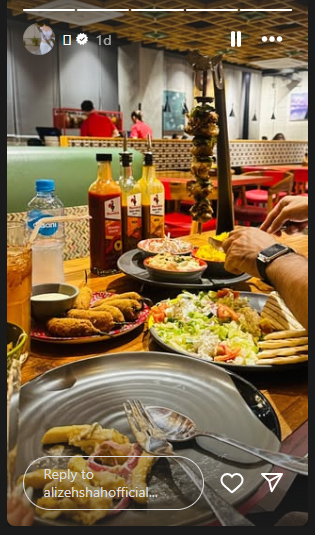 In the latest posts, Alizeh was seen spending time with a man whose identity remains unknown. One of the stories showed her resting her hand on his shoulder, accompanied by two blue heart emojis. In another clip, the same man appeared to be serving food to the actress.