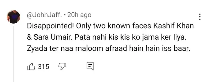 Additionally, criticism was directed at contestant Sarah Omair’s outfit during the launch episode. Many described it as “outdated, tacky, old fashioned and ill stitched” for such a grand occasion.