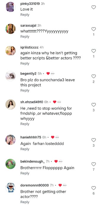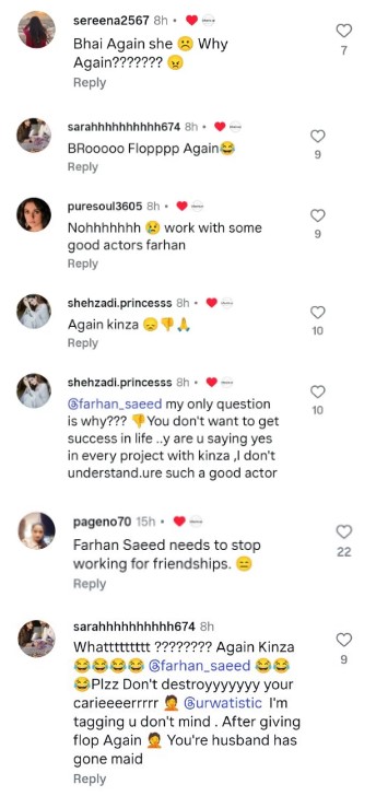 However, the announcement of Laddu has not been met with universal excitement. Many fans have expressed disappointment over the repeated pairing of Farhan Saeed and Kinza Hashmi, as their last project together, Shirin Farhad, failed to impress. Social media reactions reflect skepticism, with one user commenting, “A flop again.” Another questioned, “Why are you working with Kinza Hashmi again despite giving a flop.” Others suggested, “Farhan work with someone else too. Don’t just work for friendships.”