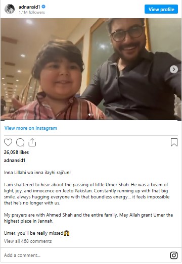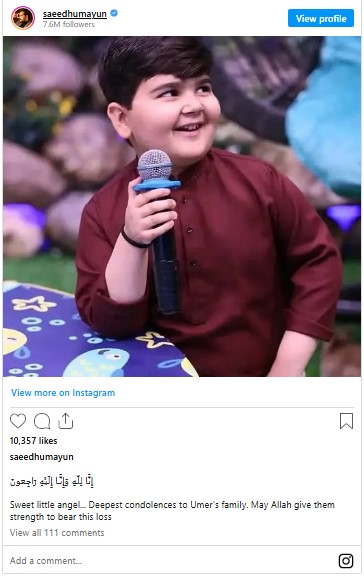Mahira Khan, Fahad Mustafa, Nida Yasir, Waseem Badami, Ushna Shah, Adnan Siddiqui, Aijaz Aslam, and several others have joined the grieving family, sharing their sadness and shock on social media. The tragic loss has deeply moved the public and celebrities alike, who remember Umer as a beloved child who brought smiles to everyone he met.