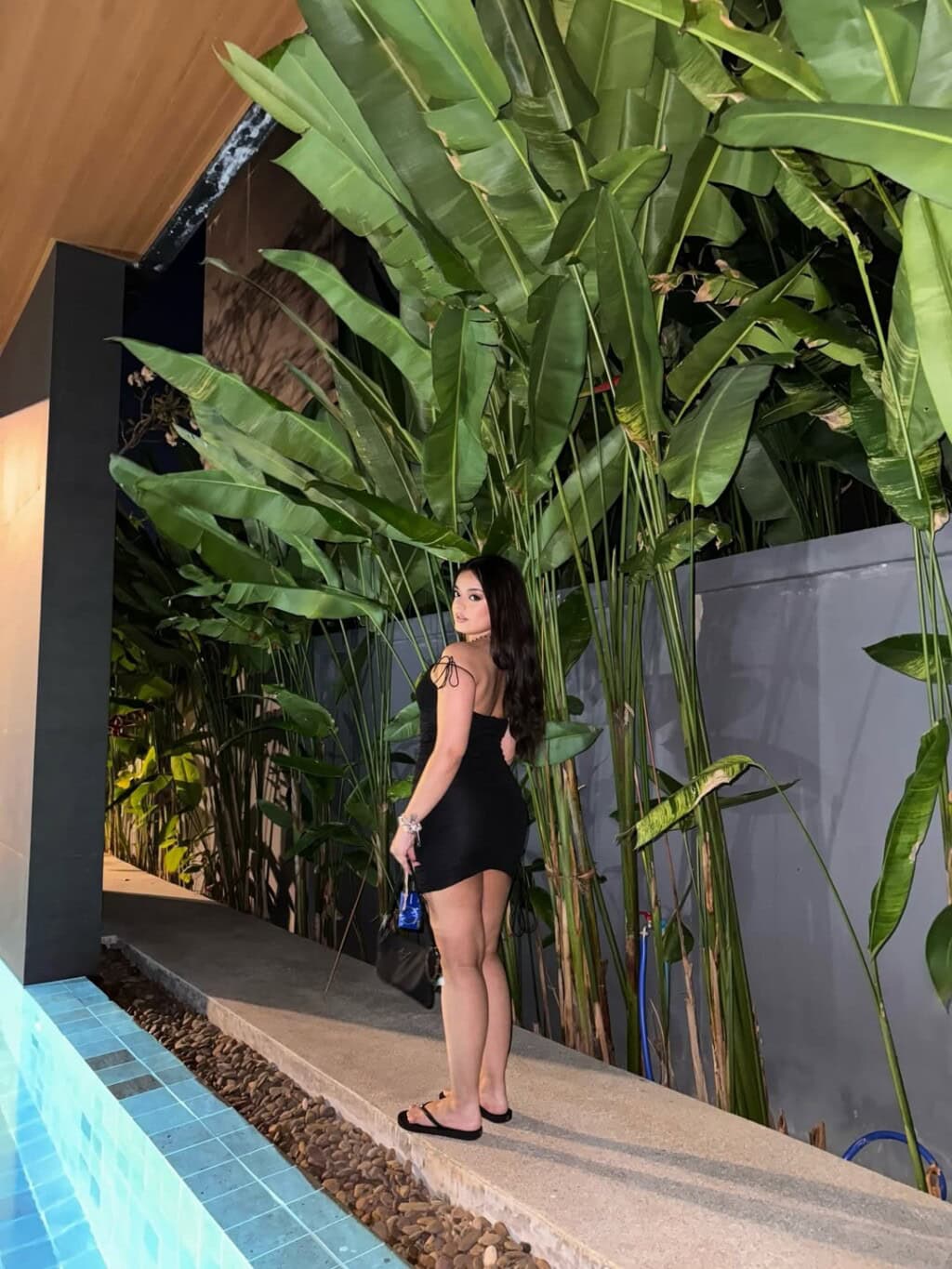 Currently vacationing in Phuket, Thailand, Zainab shared a series of photos featuring her in a little black dress paired with black flip-flops. She completed her look with her signature straight hair and glamorous makeup while posing by the side of a pool.