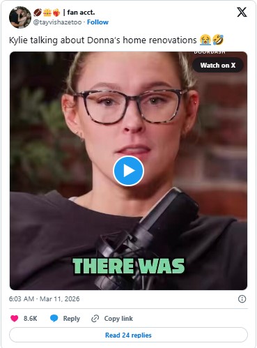Kylie also fact-checked the viral claims, noting, “The article actually revealed that she got nine windows and six doors replaced. I don’t know that she has six doors in her house. Minor detail, but I get it. I might want to check in with her because sometimes you just gotta go straight to the source.”