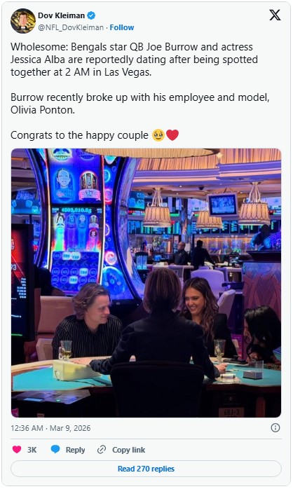 Jessica Alba has addressed the rumors swirling around her supposed relationship with Cincinnati Bengals quarterback Joe Burrow after a viral photo of the two together in Las Vegas sparked widespread speculation. The photo, which showed the pair sitting alone at a casino in the early hours, quickly made its rounds on social media, leading many to believe they were romantically involved.