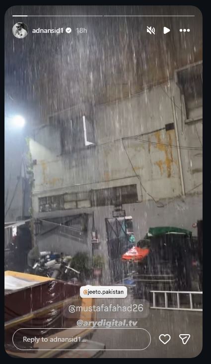 Fahad Mustafa and Adnan Siddiqui were recording Live show Jeeto Pakistan when the studio’s roof began to leak, almost triggering Mustafa to slip and fall. The rain, though, did not reduce their spirits, as Siddiqui shared a lighthearted moment of them making the best of a bad situation.