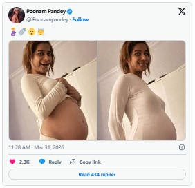 Poonam Pandey dropped some pics on social media yesterday (March 31, 2026) showing off what looks like a baby bump in a crop top, with just pregnancy emojis like 🤰🍼👶. Fans went nuts—congrats pouring in, “Who’s the dad?” questions everywhere. But hold up, is she actually pregnant? Especially with April Fools’ right around the corner and her wild history of stunts?