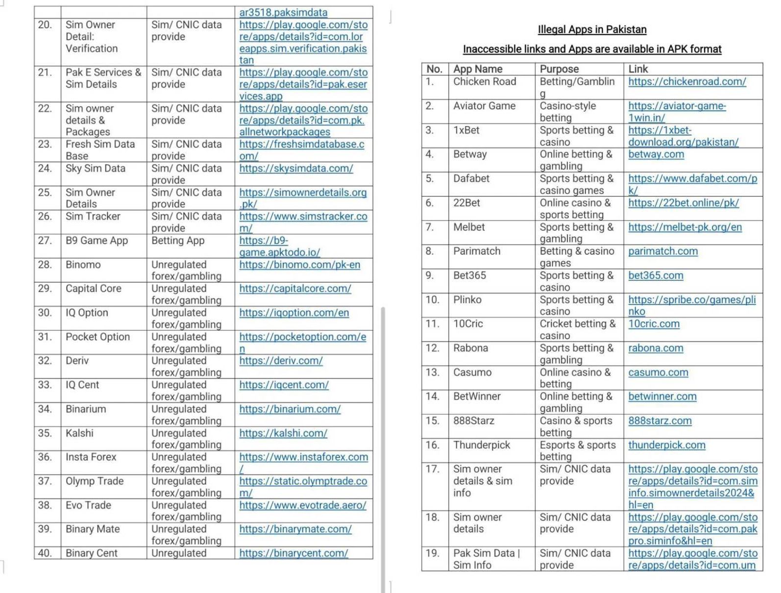 Among the banned applications are Aviator Game, Chicken Road, 1xBet, Dafabet, 22Bet, Me Let, Pari Match, Bet365, Plinko, 10Cric, Rabona, Casumo, along with multiple unregulated forex trading platforms. The Pakistan Telecommunication Authority (PTA) has started blocking these apps nationwide to prevent further financial exploitation.