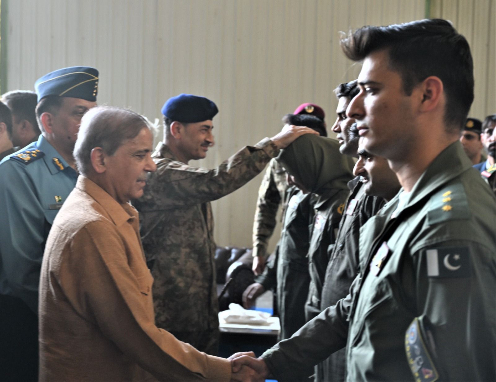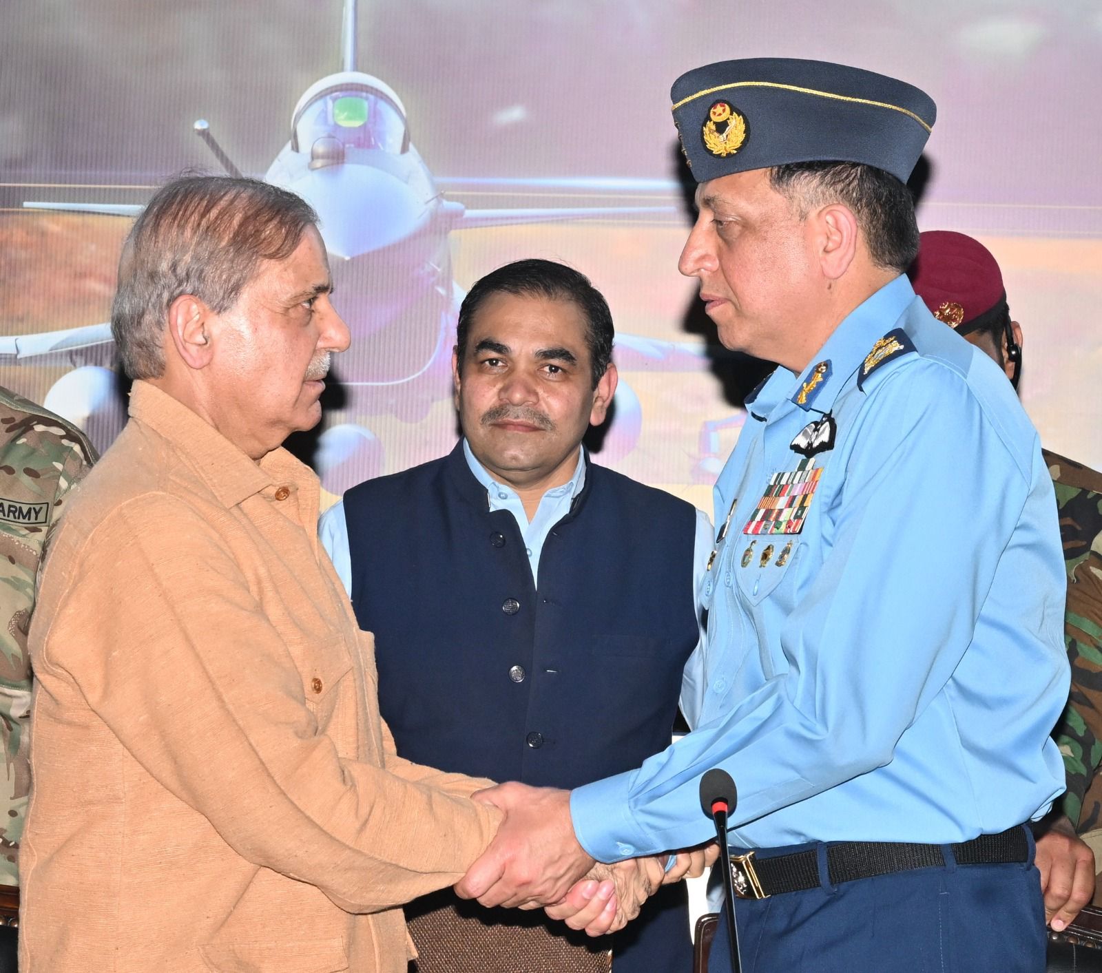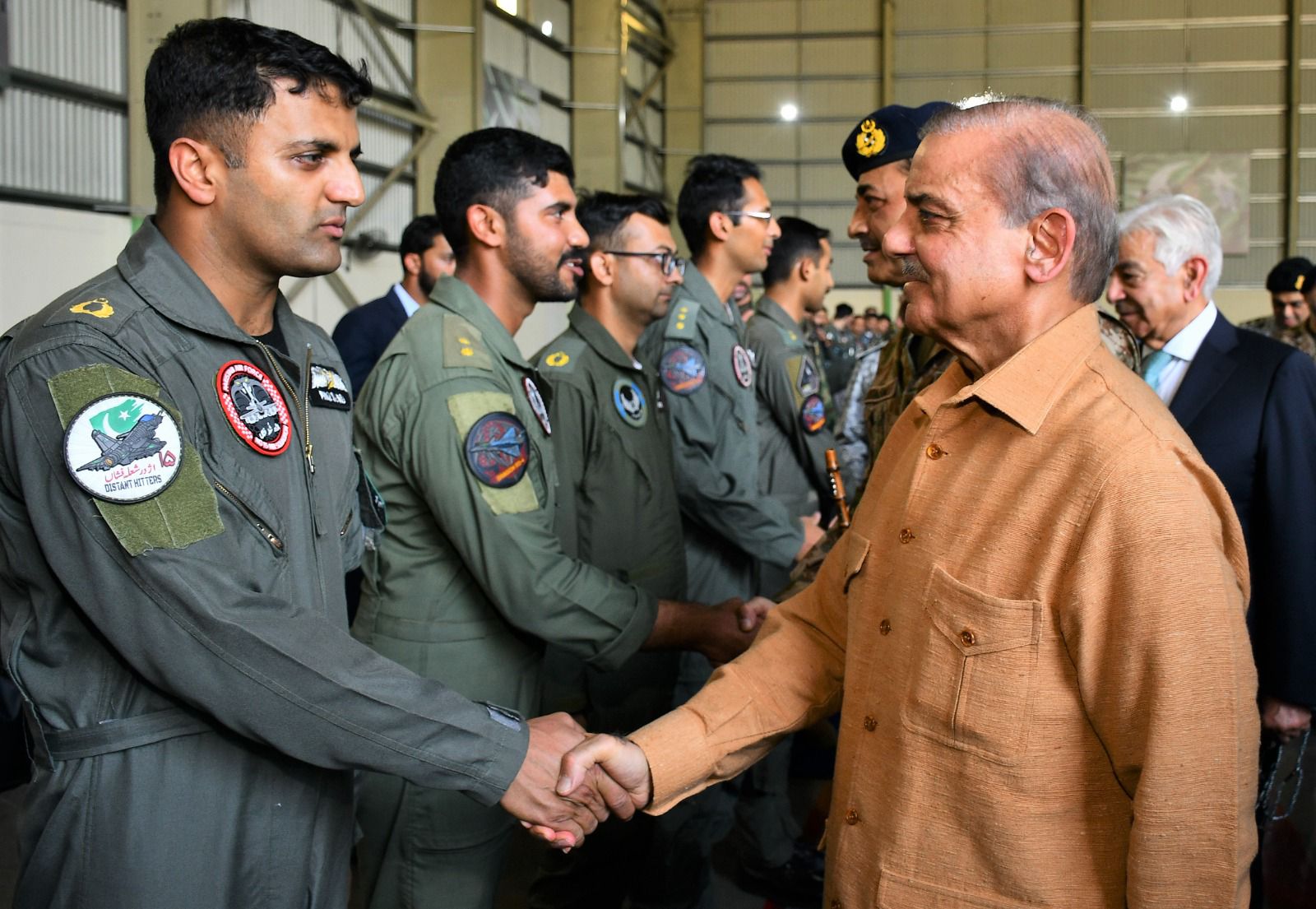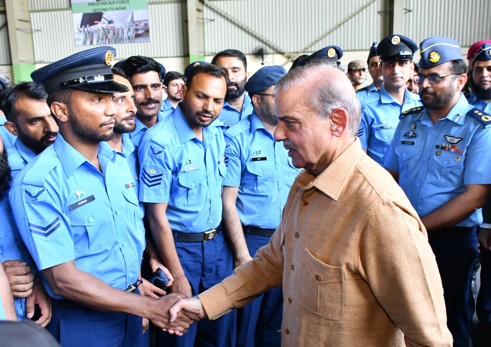 The Prime Minister was received by the Chief of the Air Staff, Air Chief Marshal Zaheer Ahmed Baber Sidhu, NI (M). During his visit, he was briefed comprehensively on the Pakistan Air Force’s operational readiness and combat capabilities. He interacted with pilots, engineers, and technical staff, commending their “professionalism, precision, and steadfast dedication to national defence.”
