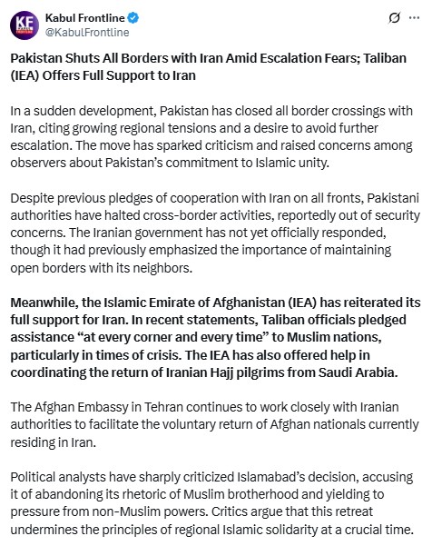 Certain Afghan-linked and Indian social media accounts with known anti-Pakistan leanings are actively spreading baseless propaganda regarding an alleged shutdown of the Pakistan-Iran border. This coordinated campaign of misreporting appears aimed at creating confusion and undermining Pakistan’s diplomatic posture in the region.