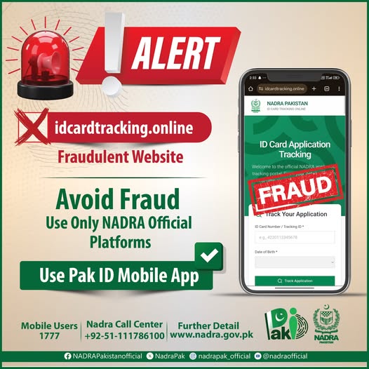 In a social media message, NADRA stated that idcardtracking.online is a fake website. The authority advised citizens, particularly overseas Pakistanis, not to engage with agents or third-party service providers for identity-related services. “To avoid fraud, individuals should use only the official Pak-ID mobile application for identification services,” NADRA added.