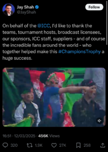 Thanks for hosting the Champions Trophy, says Jay Shah without taking Pakistan’s name