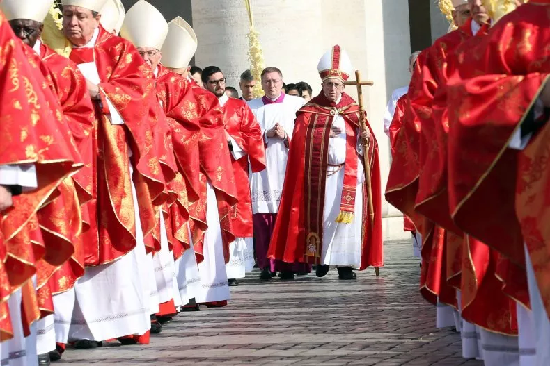 On March 25, 2018, during Palm Sunday Mass, he and the cardinals wore red vestments, with mitres representing authority and white garments symbolizing purity and resurrection.