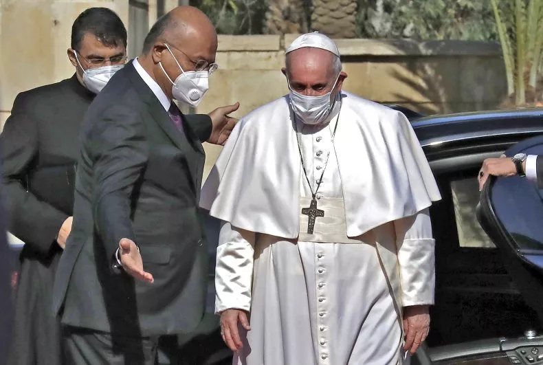 On March 5, 2021, Pope Francis made a historic visit to Iraq, becoming the first pope to travel there, with stops in Baghdad, Najaf, and Mosul, where he advocated for peace and reconciliation.