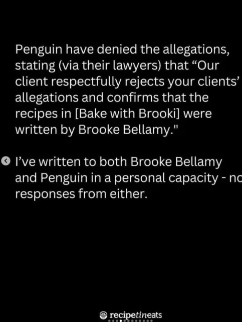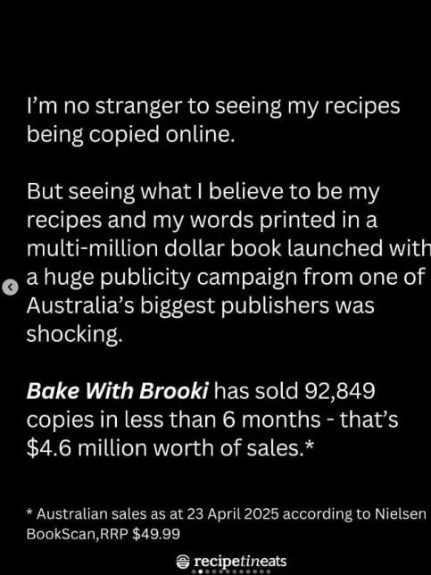 Bellamy denied the claims hours later, stating she had used the recipes for years before Maehashi published them. On Instagram, she wrote: “I’ve sold these recipes commercially since 2016. When RecipeTin shared a caramel slice in 2020, I noticed similarities but didn’t act.” Bellamy added she offered to remove the recipes from future editions to avoid conflict.