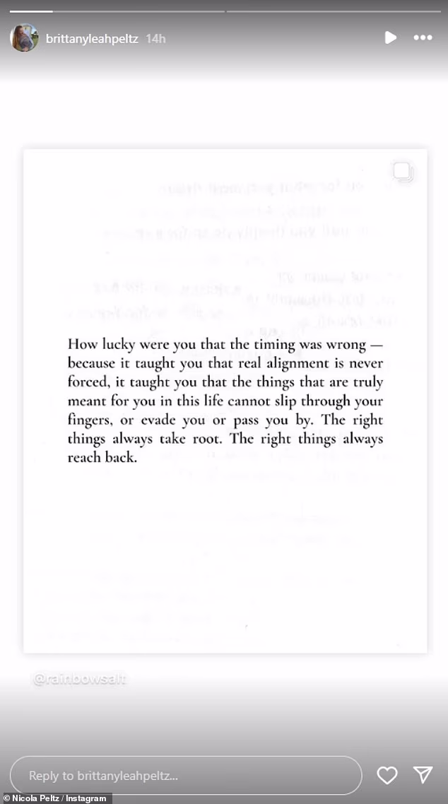 In her Instagram story, Brittany posted an emotional quote that many believe hints at the ongoing feud. It said, “The right things always take root. The right things always reach back.” The message added, “How lucky you were that the timing was wrong – because it taught you that real alignment is never forced.”