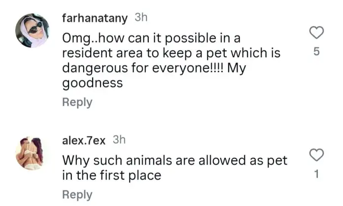Footage of the incident quickly spread across social media, sparking widespread outrage. Public reaction has been harsh, with many condemning the practice of keeping wild animals in private homes.