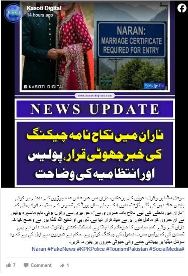 Authorities have urged the public to disregard false information circulating on social media and to rely solely on verified updates from official sources. The rumor of mandatory marriage certificates for entry into Naran has thus been conclusively debunked.