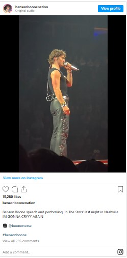 Meanwhile, Benson Boone may have briefly acknowledged the emotional impact of the breakup during his American Heart Tour performance at Nashville’s Bridgestone Arena. Prior to singing In the Stars, Boone shared a heartfelt message about loss and moving forward.