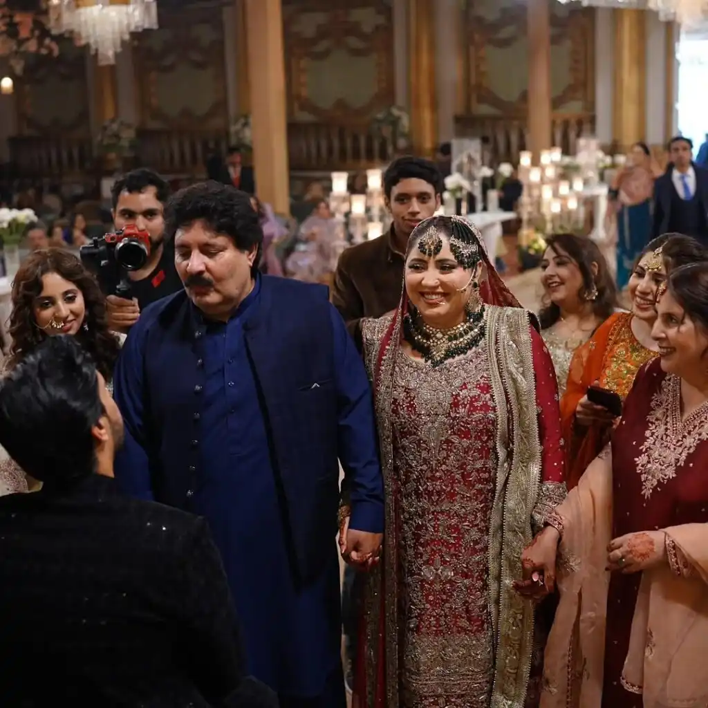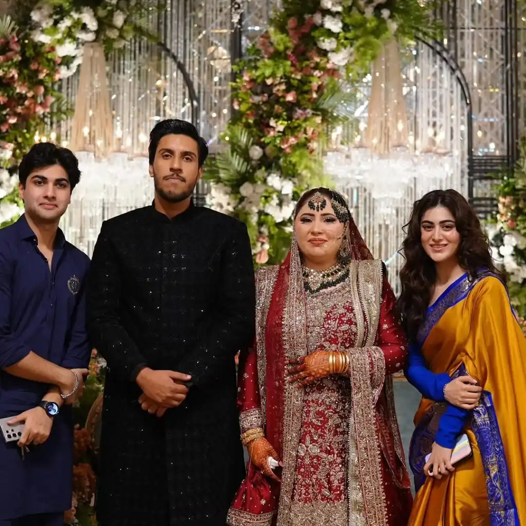 Kainat wore a beautiful red and silver dress with heavy traditional jewelry. Actress Hina Afridi, known for her role in Raja Raani, was also invited to the wedding.