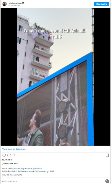 Atif Aslam had been performing at the American International University-Bangladesh (AIUB) for an enthusiastic crowd of students, who were enjoying his hit songs. However, as the concert went on, the singer noticed several fans enjoying the show from the balconies and rooftops of surrounding houses.