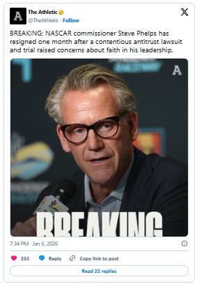 Following his resignation, Phelps released a statement thanking his colleagues and fans, calling his NASCAR career “life changing.” The organization has not yet announced a successor or additional leadership changes.