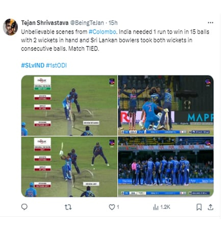 With India needing one run to win and two wickets in hand, Sri Lanka skipper Charith Asalanka two wickets of Shivam Dube (25) and Arshdeep Singh (0) on successive delivers to bowl the visitors out for 230.