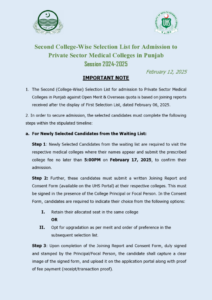 A total of 1,744 MBBS seats have been allocated through this round of selections. One notable update is the decrease in minimum merit by 4.17% compared to the first selection list. Students who have been successfully allocated seats in this round must submit their fees and complete their joining formalities by February 17, 2025.