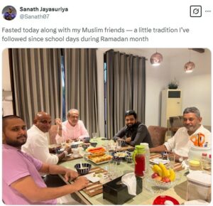 In the picture shared on X, Jayasuriya wrote, “Fasted with my Muslim friends today – this is a small tradition that I have followed from school to Ramadan.