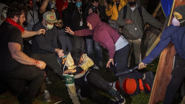On Tuesday evening, despite their peaceful approach, a group of pro-Israel counter-protesters had attacked them, tearing down barricades and assaulting the participants with metal pipes, mace and pepper spray. Fireworks were also fired into the encampment.