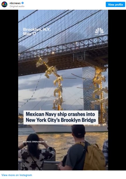 19 Injured After Mexican Navy Ship Collides with Brooklyn Bridge in New York