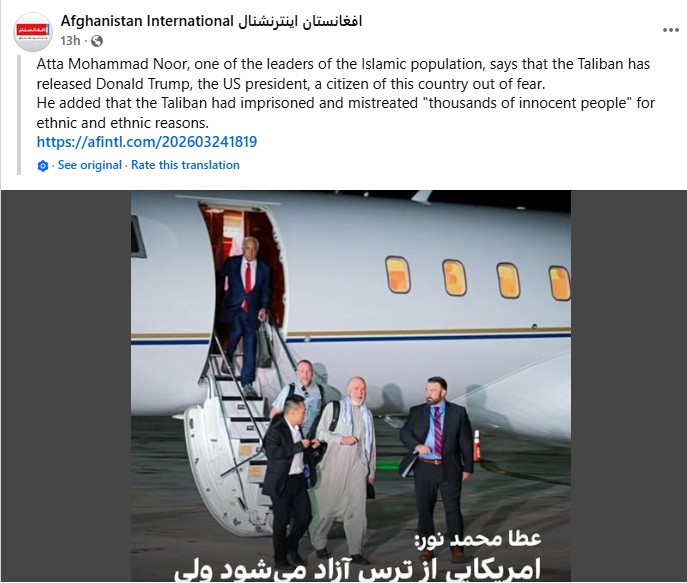 A senior Afghan political figure, Atta Mohammad Noor, has criticized the Taliban following the release of an American detainee, claiming the move reflects fear of the United States rather than a shift in policy.
